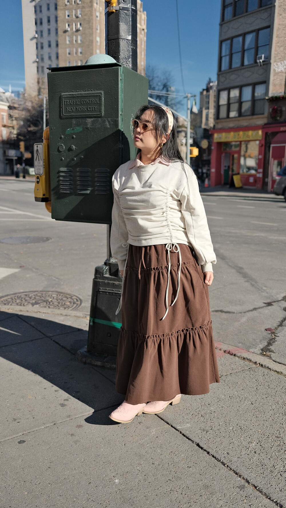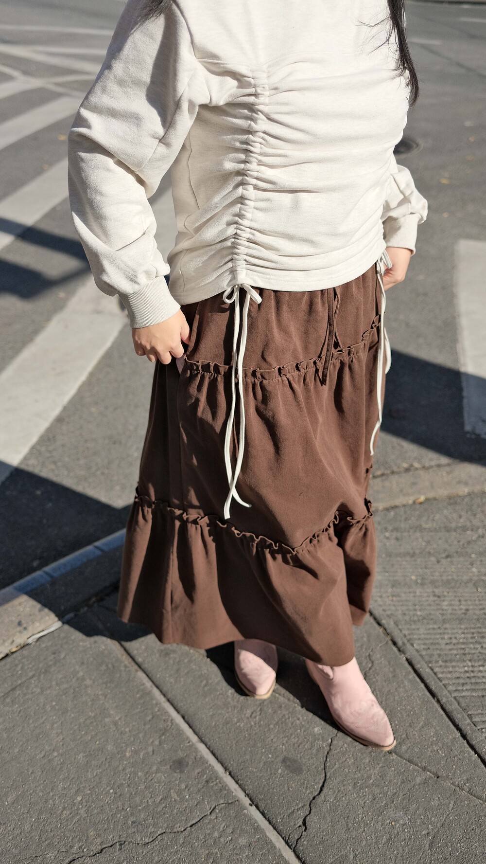 Corduroy Long Tiered Ruffle Skirt - Brown