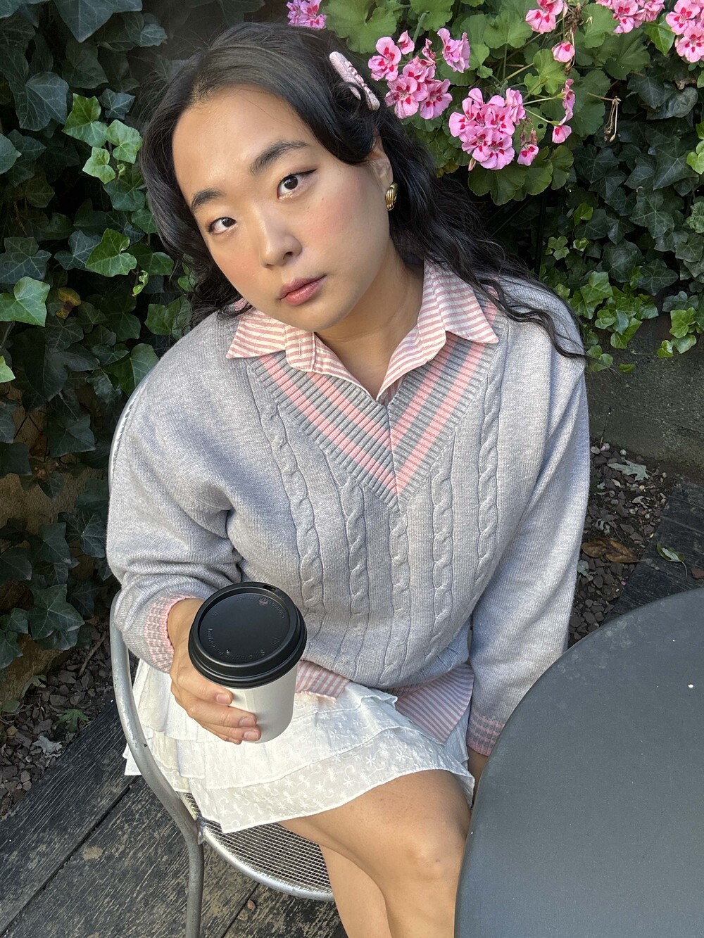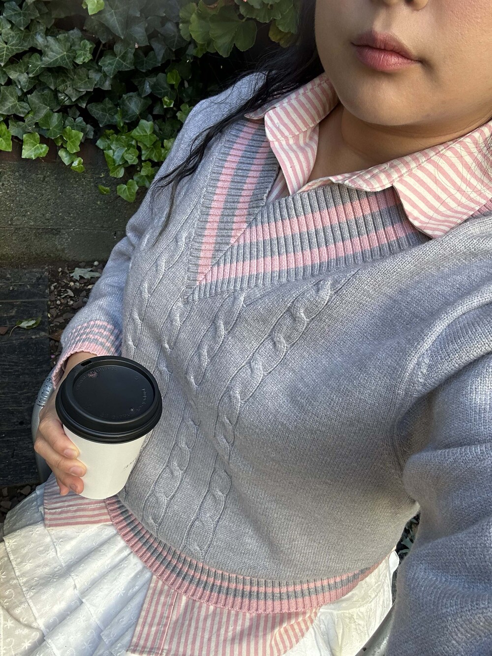 * 브이넥, 소매, 밑단 배색 스트라이프
