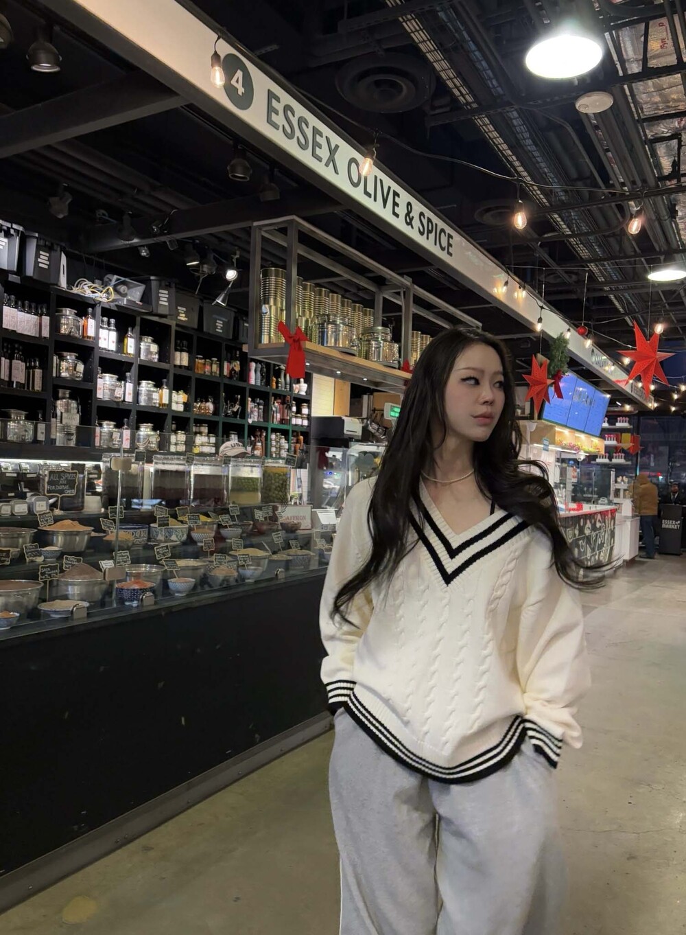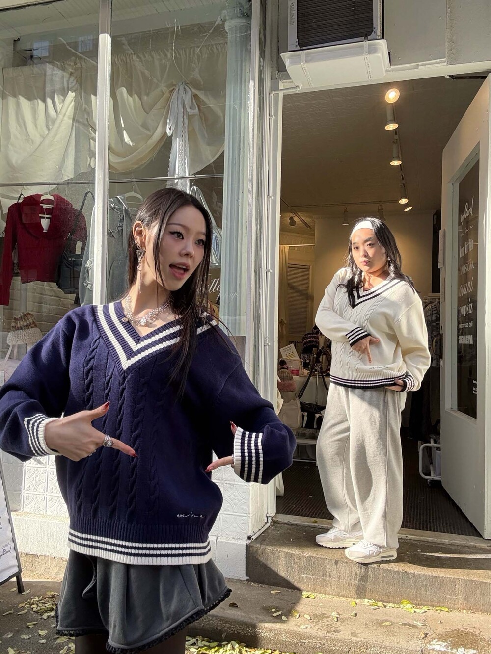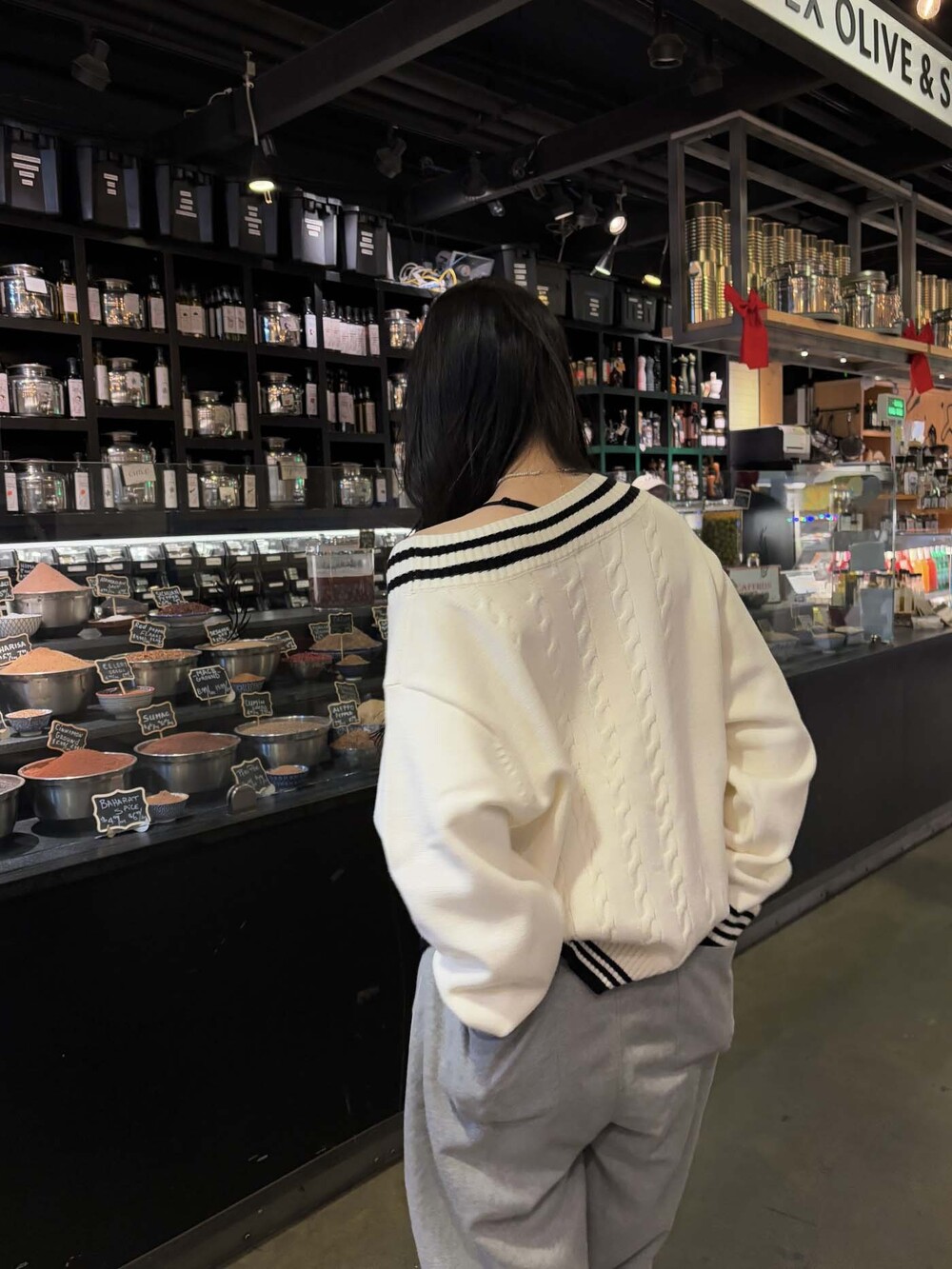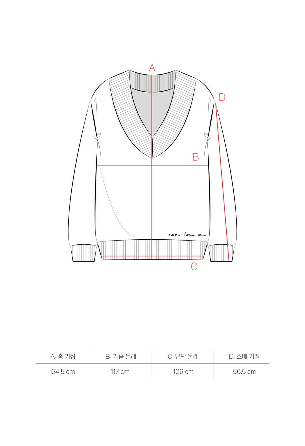 * 브이넥, 소매, 밑단 배색 스트라이프