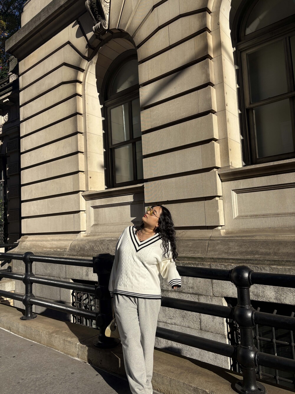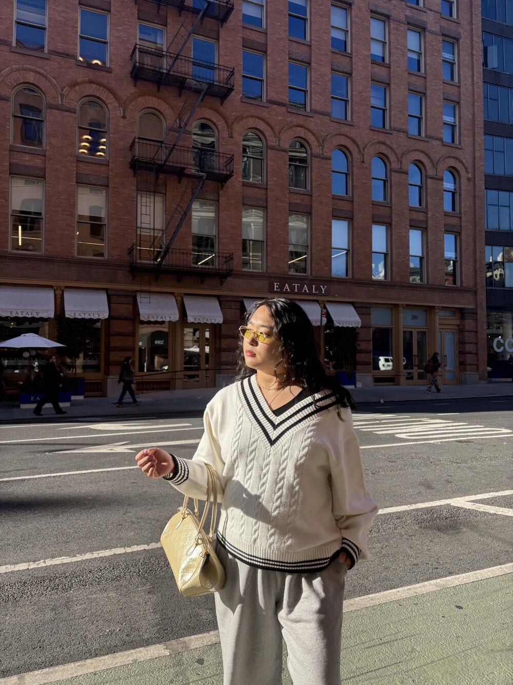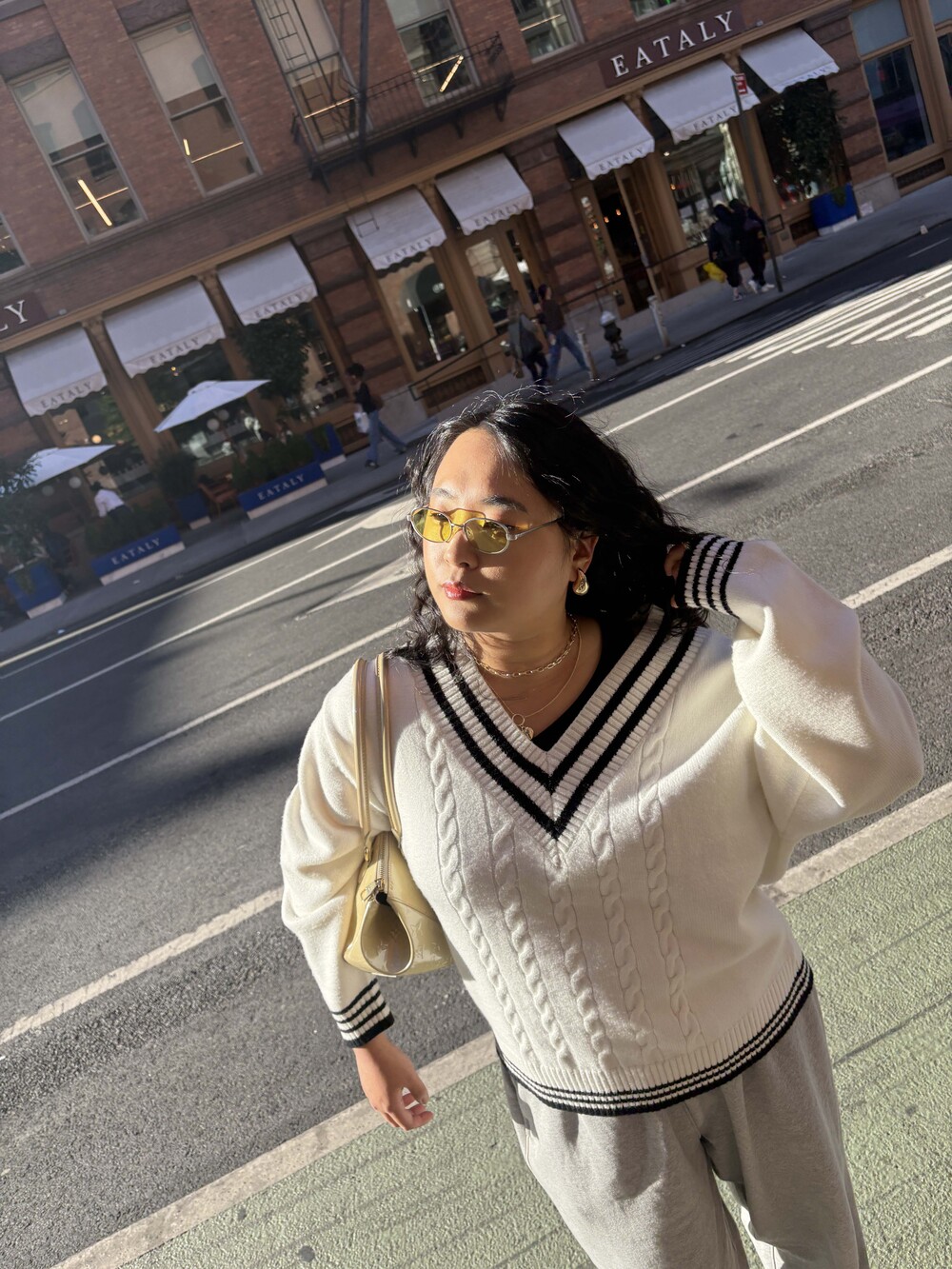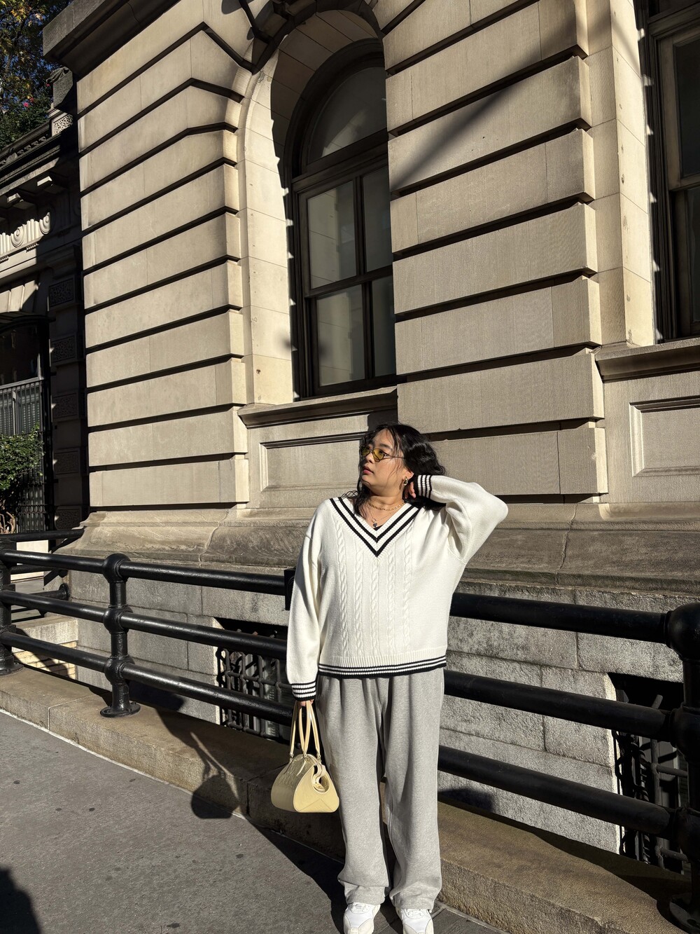 * 브이넥, 소매, 밑단 배색 스트라이프