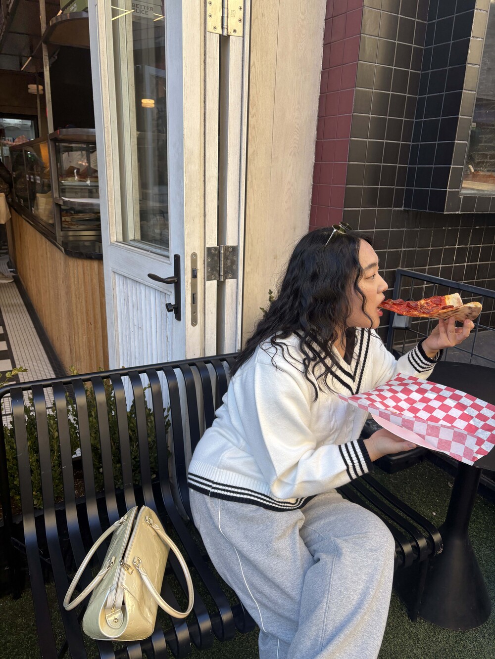 * 착용자의 오른쪽 밑 배색 eve in a logo 자수