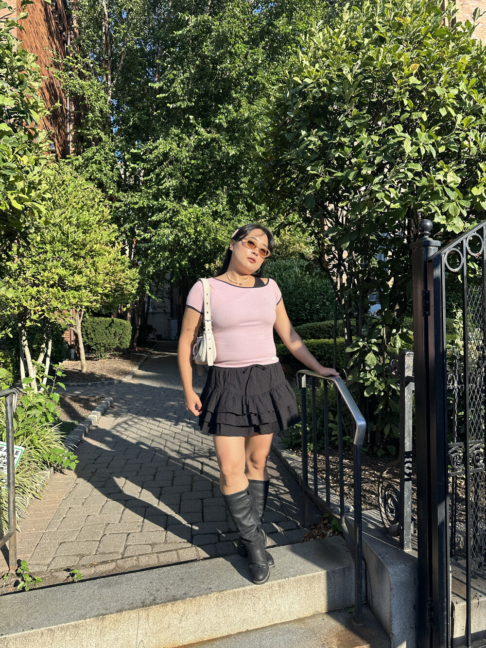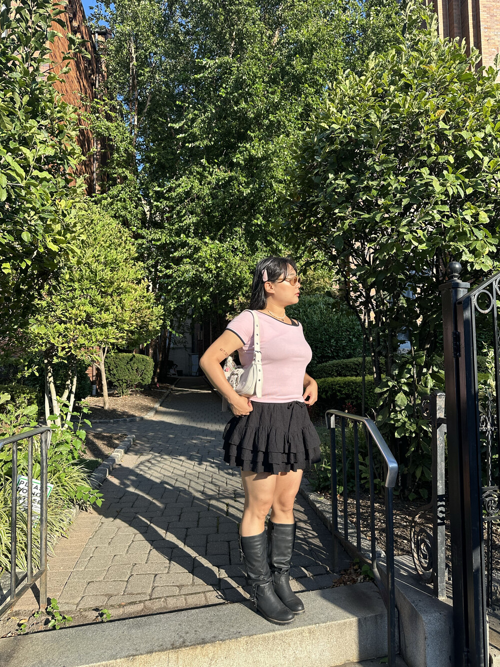 * 곡선 절개선을 따라 더해진 3단 러플 디자인