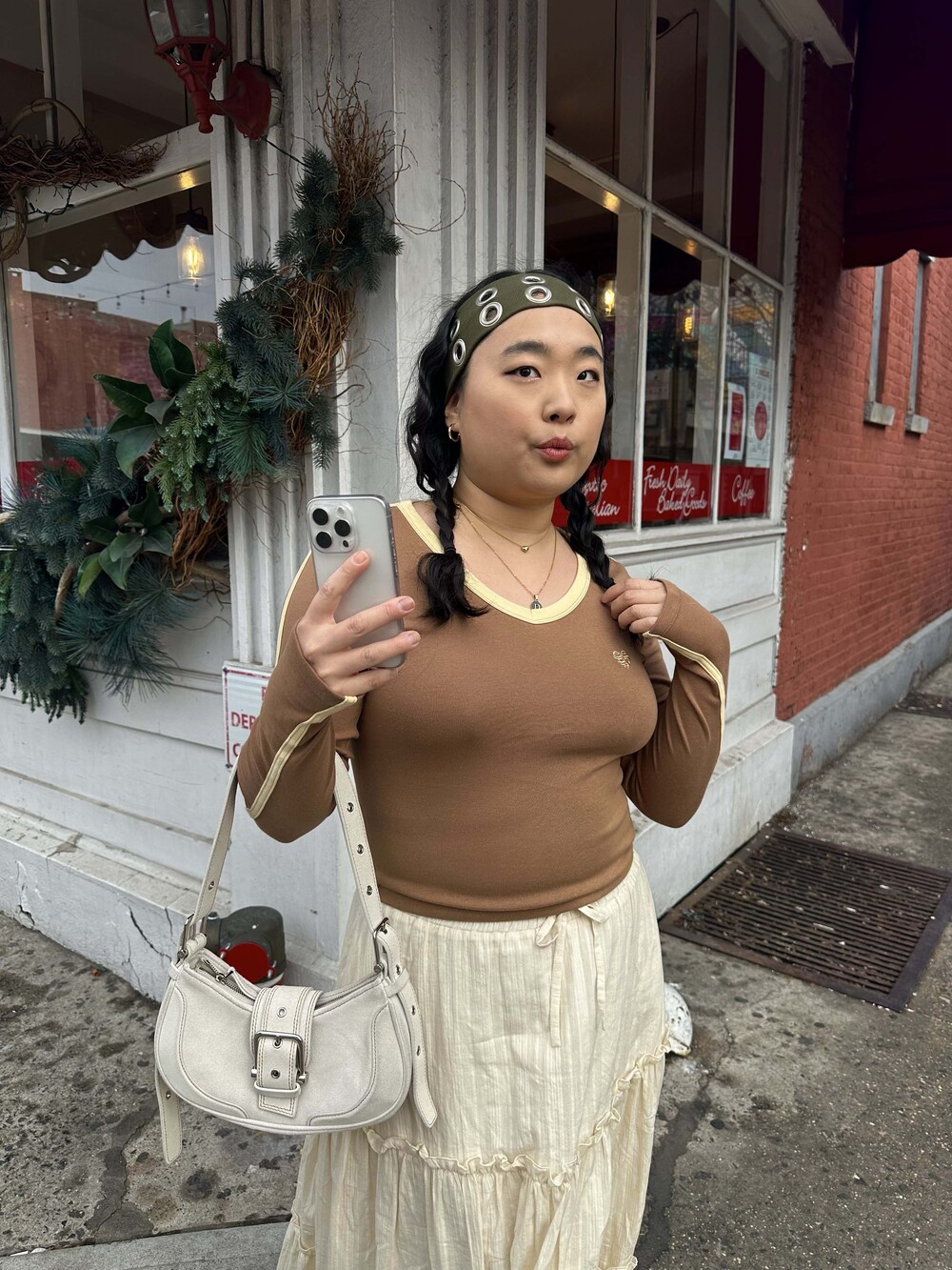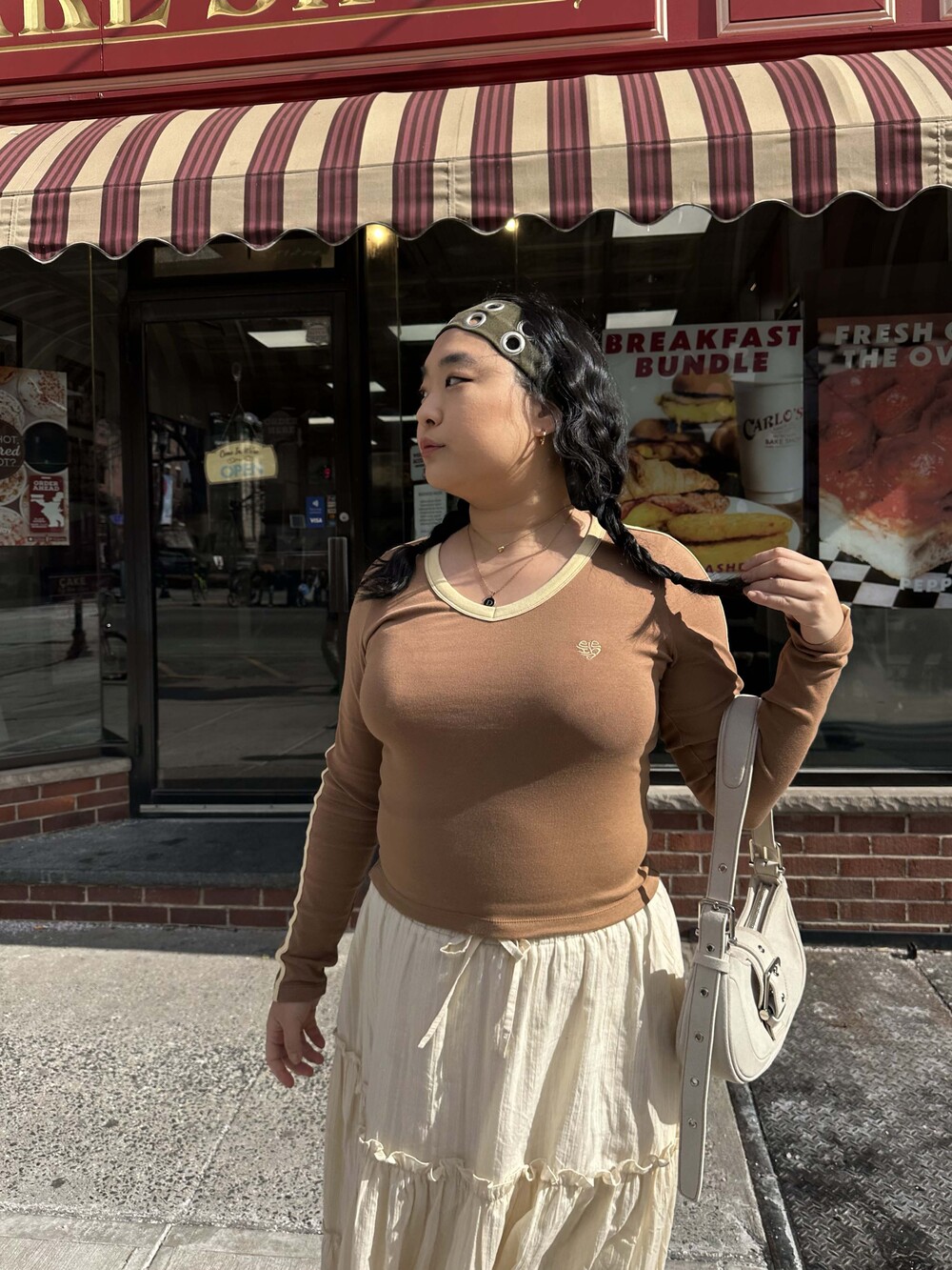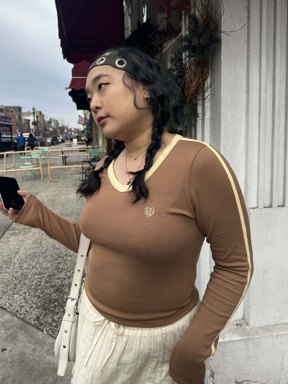 (Eve in A X Popsiz) Heart EveinA Embroidery Tee - Brown/Butter