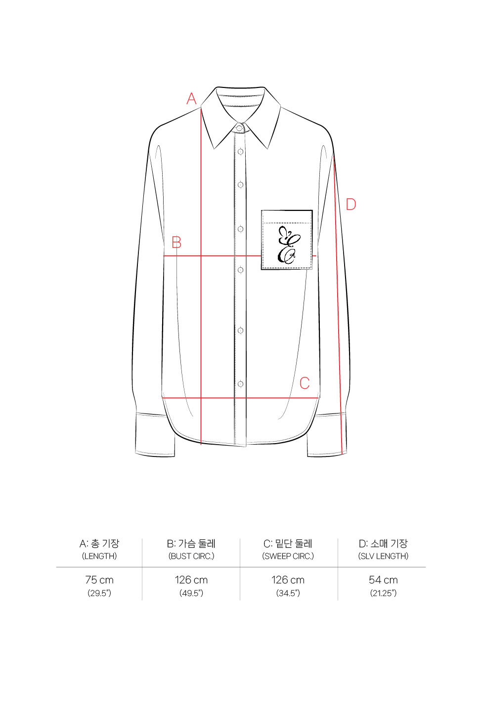 * 전면 가슴 포켓에 시그니처 E 자수