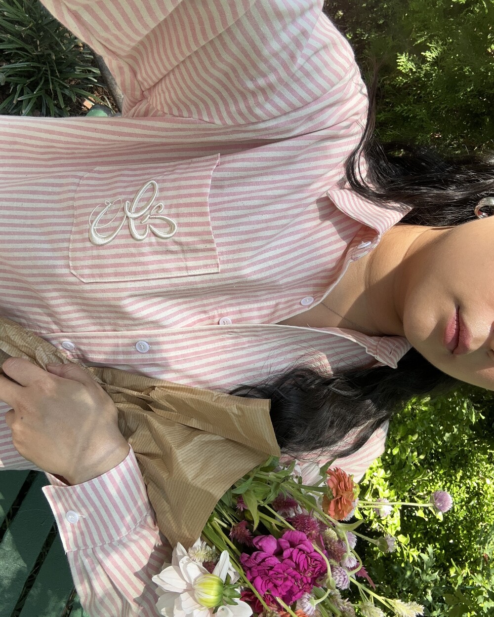 Oversized Embroidery Striped Shirt - Pink