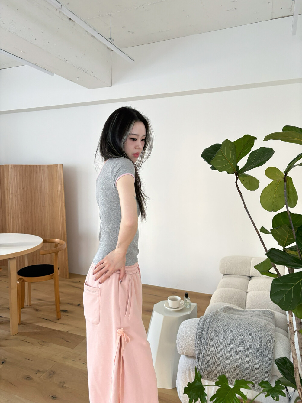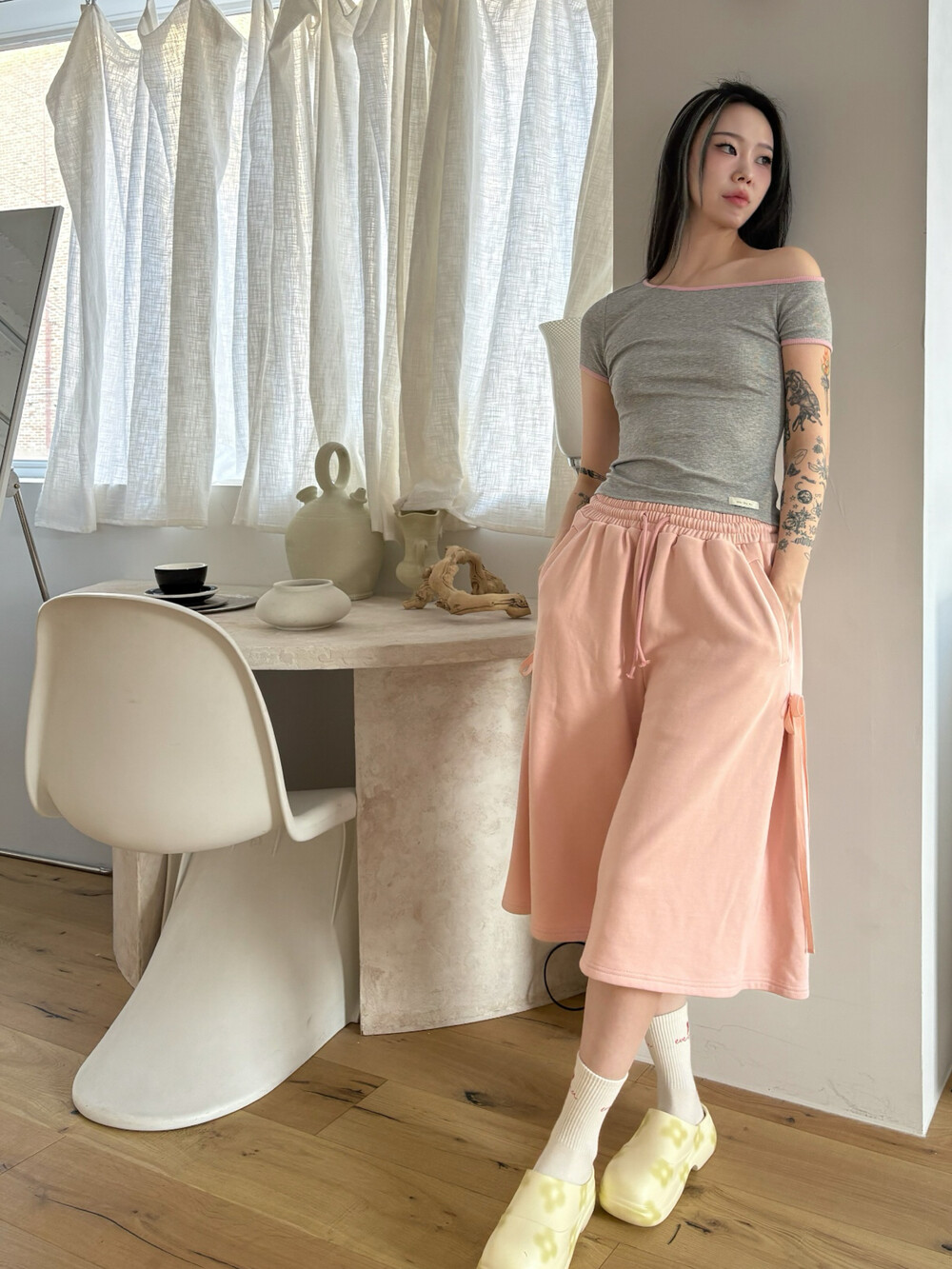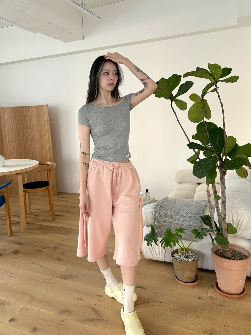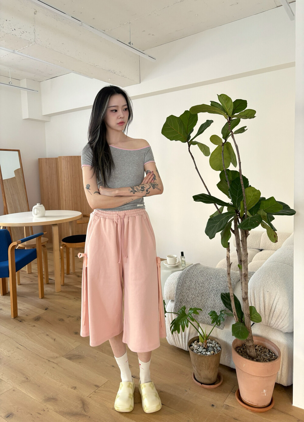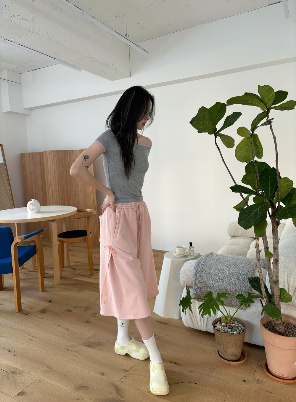 (Eve in A X Popsiz) Ribbon Tie Sweatshorts - Petal Pink