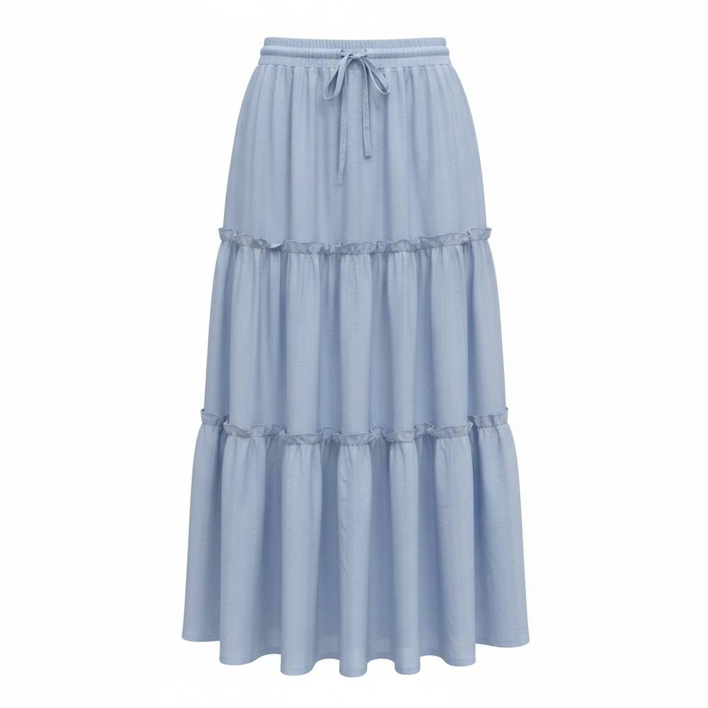 Summer Maxi Tiered Ruffle Skirt - Light Blue