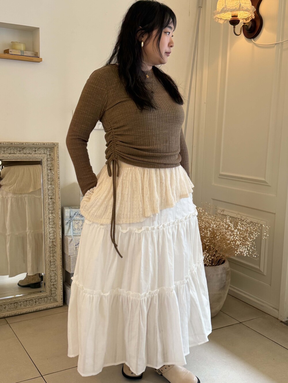 * 러블리한 무드의 러플 디테일 롱치마