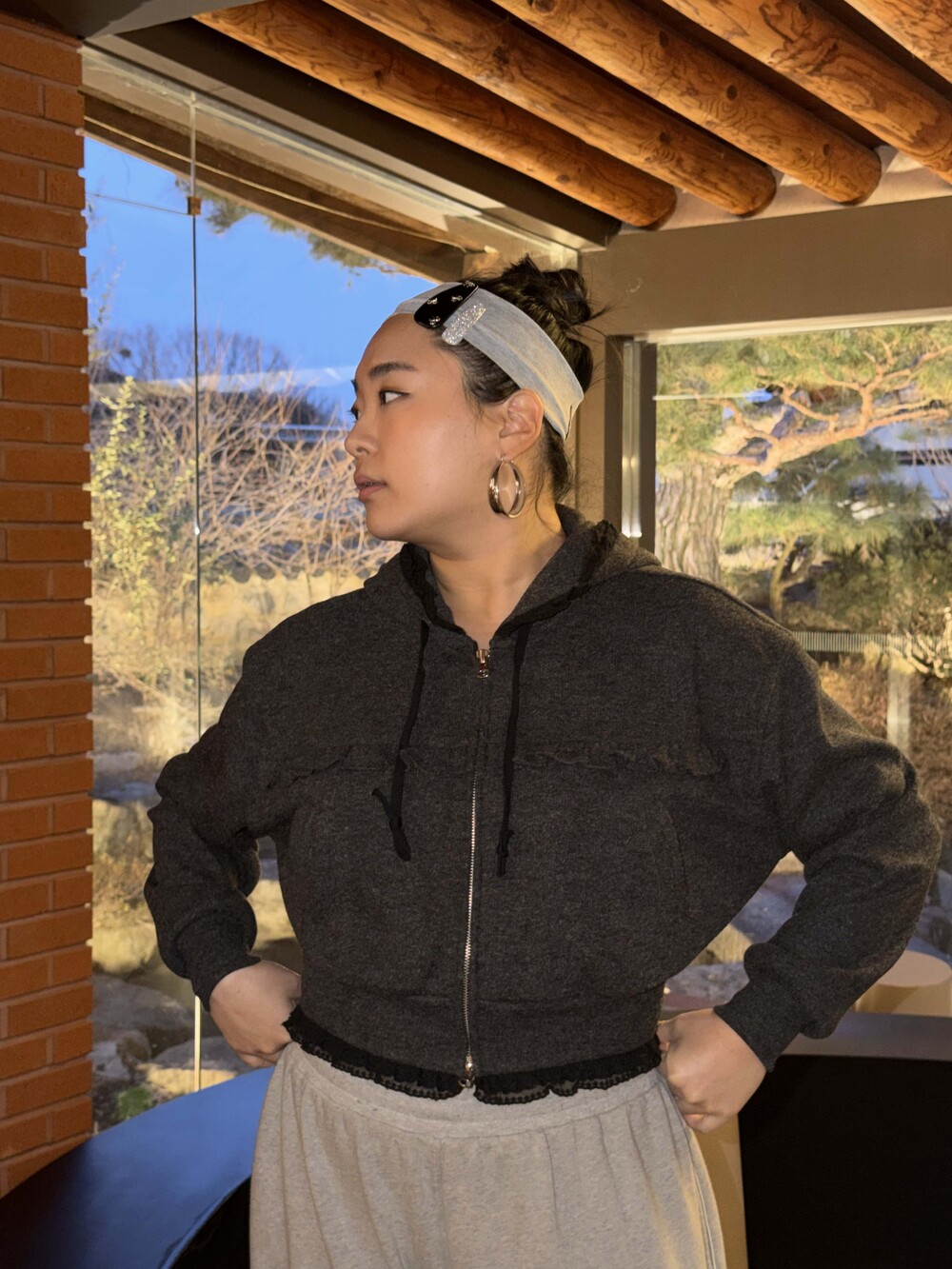* 밑단, 후디 모자에 레이스 러플 디테일