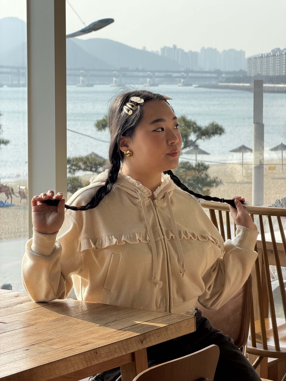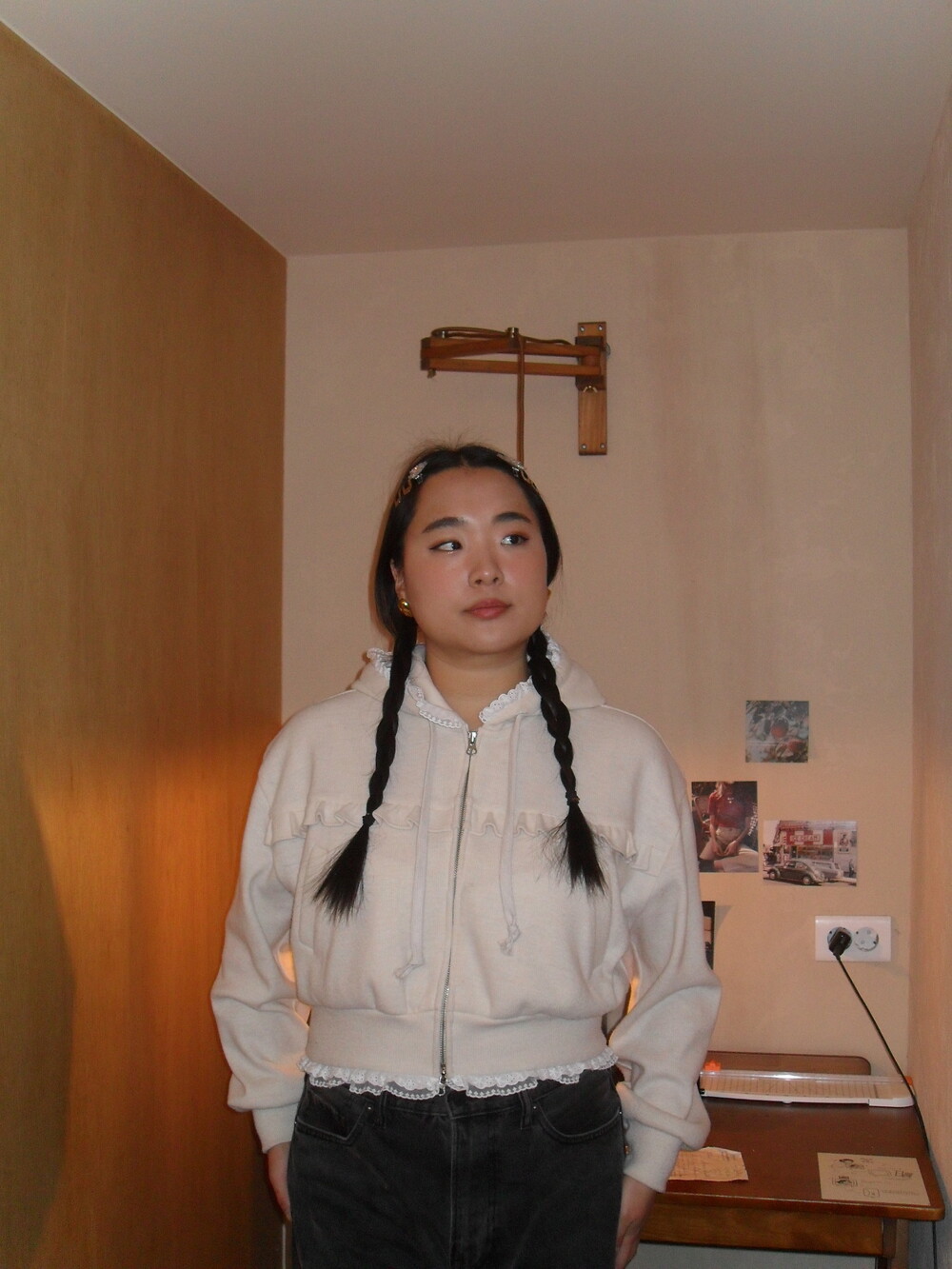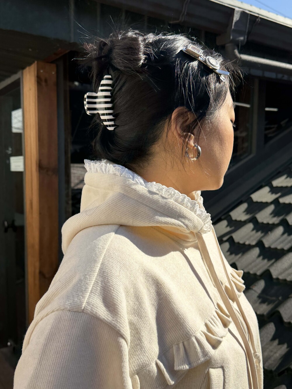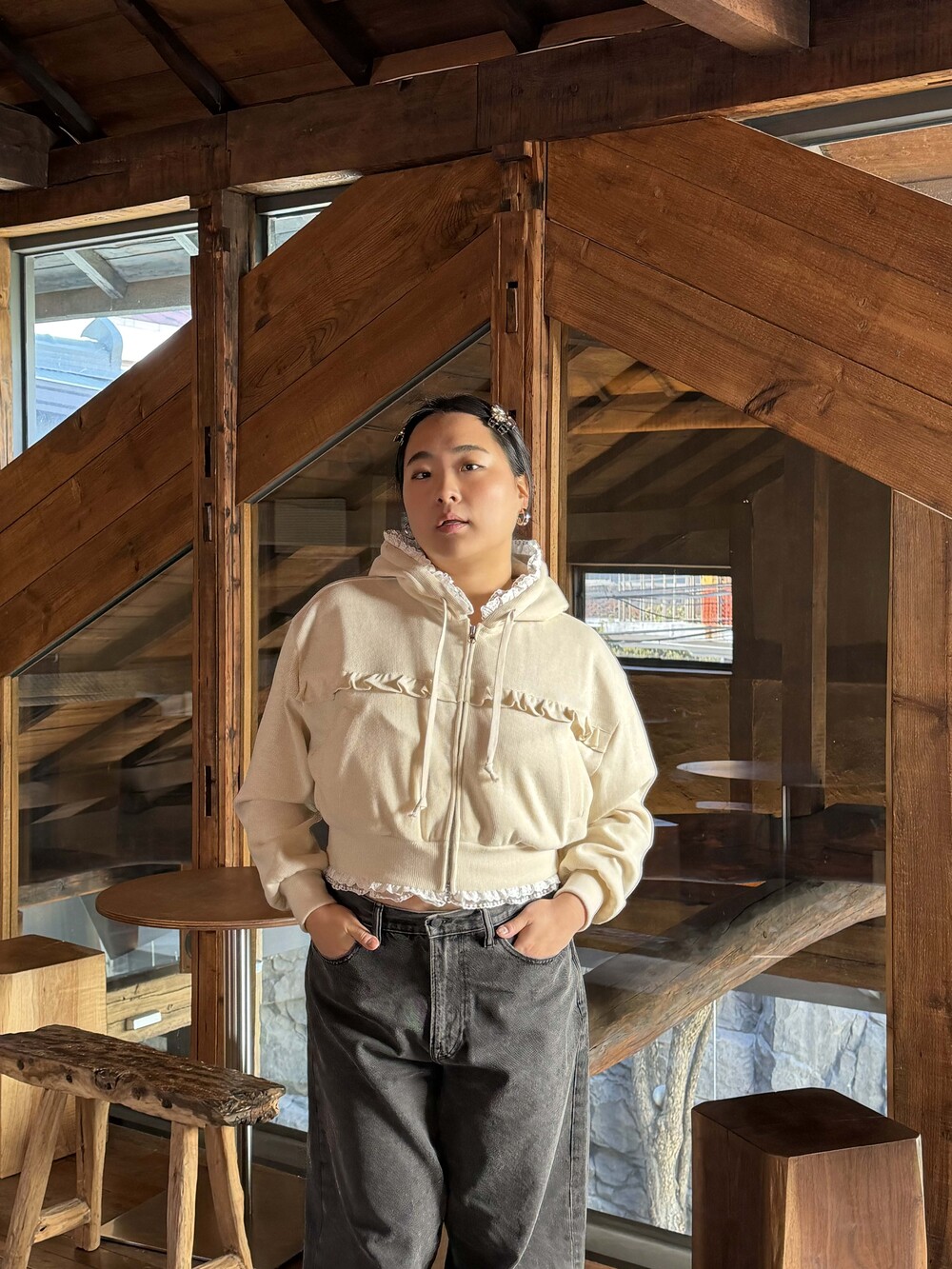 * 밑단, 후디 모자에 레이스 러플 디테일